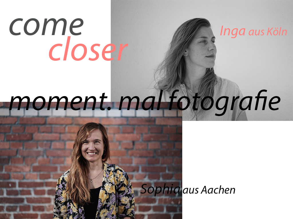 moment.mal fotografie – das sind wir: Sophia und Inga, zwei Fotografinnen und Videografinnen aus Aachen und Köln. Wir erstellen schöne Hochzeitsreportagen ohne großen SchnickSchnack. Dabei legen wir unseren Fokus auf Natürlichkeit, Persönlichkeit und Nähe.